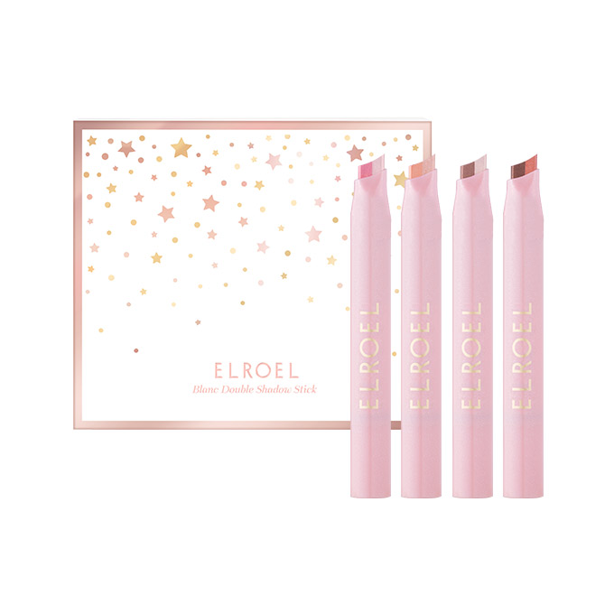 It is a two-tone shadow with 4 types of attractions (Twinkle-Blossom/Mellow-Peach/Honey Milk-Cocoa/Cinnamon Rose-Brown) which allows even beginners to succeed in natural eye make-up easily. As a stick shadow with diagonal edge cutting comprised of a main color and point color, a natural gradation eye make-up can be achieved with just one touch.